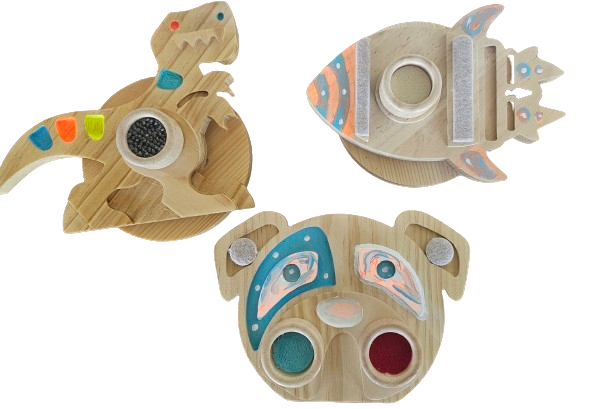 Our mini sensory board is seven inches by seven inches and features a glow-in-the-dark design that is made specifically to enhance fine motor and visual sensory activities. Our customized adaptive sensory board is colorful, engaging, and made to improve communication and increase aptitude for focus. It is versatile enough to allow an individual to take part in therapeutic low-impact fine motor skill activities that are tactile, which has been shown to be important for people struggling with cognitive functioning.